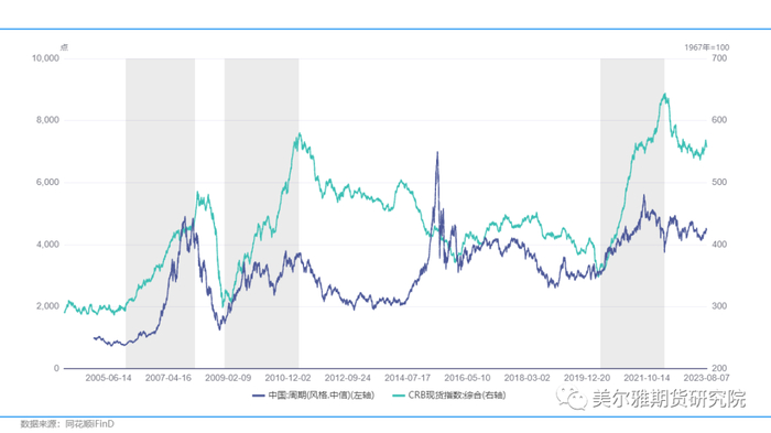 2020年以来,大宗商品价格在新冠疫情后因供给冲击大幅上涨,展开了一轮高达50%-100%涨幅的牛市行情,CRB商品现货指数突破历史新高。时隔10年后,市场的目光再度聚焦于周期股,2020-2021期间涌现出大量5-10倍的周期股,如兖矿能源、陕西煤业、远兴能源、云铝股份、紫金矿业、中国石化等,即便在2022-2023年的下跌周期中,市场对周期股的热情仍未减退。在当前宏观背景下,周期股已经从高位纷纷下跌近30%-50%,商品价格也已经从高位回落近20%,未来走势如何演绎,以及周期股和商品价格之间的变化关系如何,本文将从实证和宏观的角度剖析大宗商品期货和周期股之间联动背后的秘密。