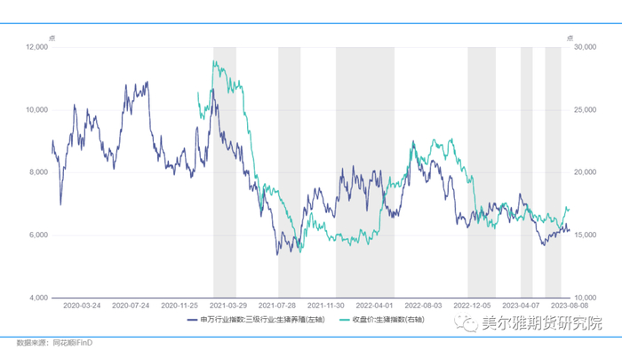 因此,综合来看,历史两次周期中生猪股票价格和期货价格表现的规律有一定差异,我们认为主要有两方面原因导致,一是股票市场对于生猪的周期研究覆盖更深,能前瞻性的预测未来猪周期的演化,而期货价格反应的更多偏短周期预期,两者之间存在一定博弈差,因此表现为近期生猪股票价格在节奏上领先于期货。但是,我们认为在大的周期方面,历史规律并不会失效,因为市场预测出来的周期底部往往不是真正底部,只有根据行业自发供需规律作用出来的底部才能真正见底。因此,我们判断生猪的股价低点或许同步或滞后于生猪价格,但是顶部领先或同步于生猪价格,上涨或下降趋势过程中,两者整体一致。