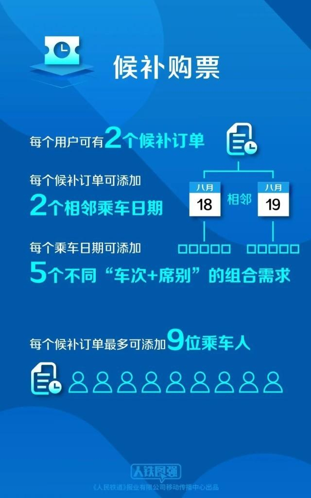目前,旅客每天可提交发到站相同或同城不同车站的两个相邻日期候补车票,从以前的各2张增加到各5张。
