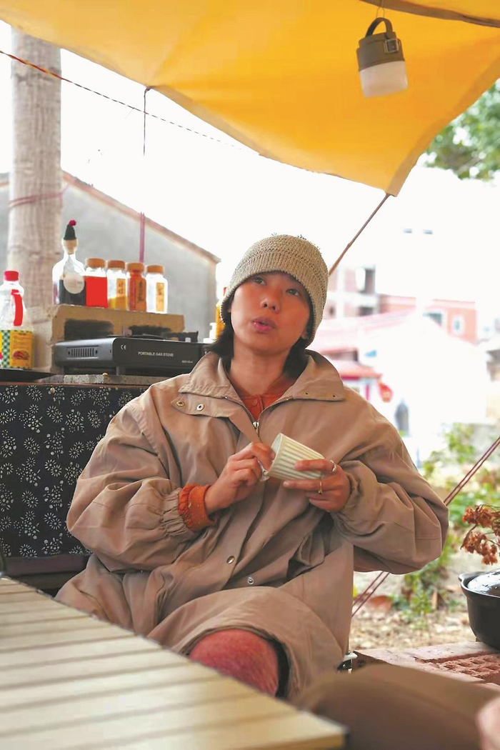 方芮淇在抖音、微信等平台展示“51号灯塔”的经营理念,吸引了不少南埔村民好奇的目光,常有村民喊她去家里吃饭。一些抑郁症患者也来到“灯塔”相互取暖,彼此疗愈。方芮淇带着他们在院内煮茶、在露台小坐,欣赏她用竹子树桩制作的家具装饰,从村民身上感受乡村生活的日常诗意与真实,感受自己与乡土的连接。