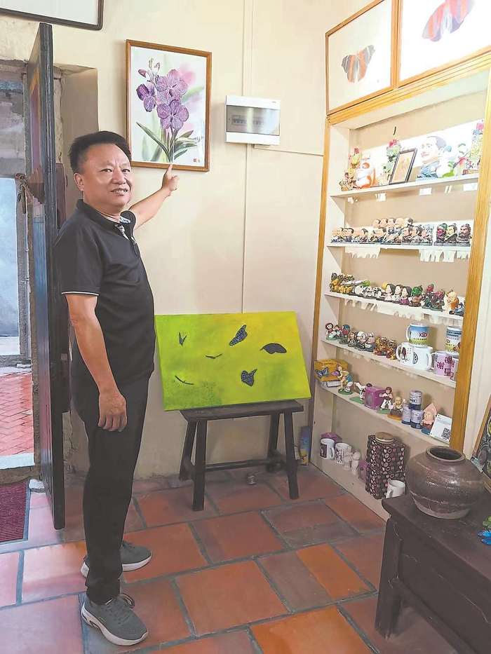 林盛章在介绍他的作品。
