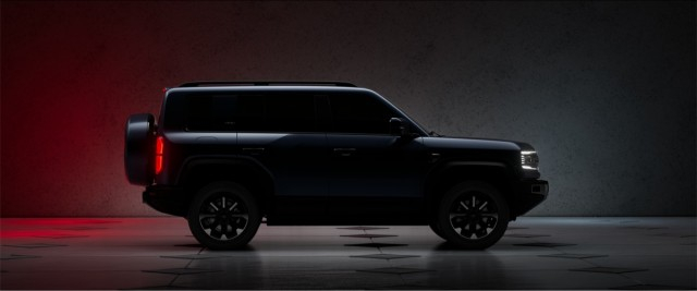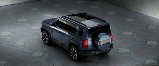 车身侧面修长硬朗,采用了硬派越野车常见的方盒子造型,轮拱部分则采用外凸的造型设计,车顶也配备了行李架。车尾部同样延续了硬派的造型,配备外挂式备胎,尾门则采用侧开的设计,尾灯采用了矩阵式回形设计。
