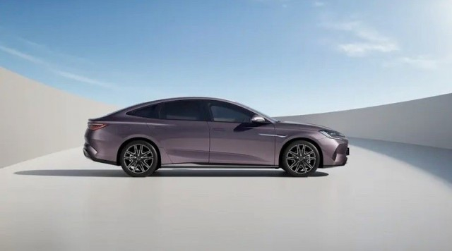 车身侧面采用遛背的造型,但是从C柱开始才会快速向下倾斜,既营造出了这台车的运动感,又保证了后排乘坐的头部空间。此外,结合此前释出的预告图来看,宋L将采用无边框车门,同时还配备了隐藏式门把手。车尾部分采用电动升降尾翼,尾翼下方则是贯穿式尾灯,同时在顶部还有一个分段式扰流板,在美观的同时还可以增加车型的运动性能。