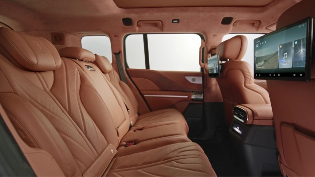 内饰方面,仰望U8采用了星环座舱,通过多重曲线塑造出星环一般的强烈环抱感。此外,仰望U8的座舱还极具科技感,车内搭载一块12.8英寸曲面OLED中控屏,同时还配备了23.6英寸仪表屏与副驾娱乐屏,座舱后排则搭载了两块12.8英寸悬浮屏。同时,仰望U8搭载了丹拿铂金证据系列车载音响系统,共有22个Hi-End级扬声器,在车内可以享受极致的听觉盛宴。