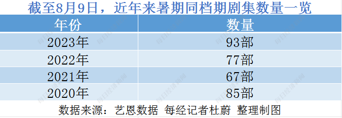 《每日经济新闻》记者梳理艺恩数据看到,从6月开始,每天都有至少一部新剧开画,截至8月9日,仅70天时间就播出了93部剧,已超过2022年暑期档播出的全部剧集的数量。