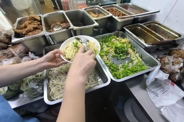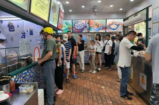 临到中午、晚上的用餐高峰,尽管出餐师傅手速极快,从收单、淋酱汁和花生酱、加各种浇头,一气呵成,但依然敌不过越来越长的排队“长龙”。