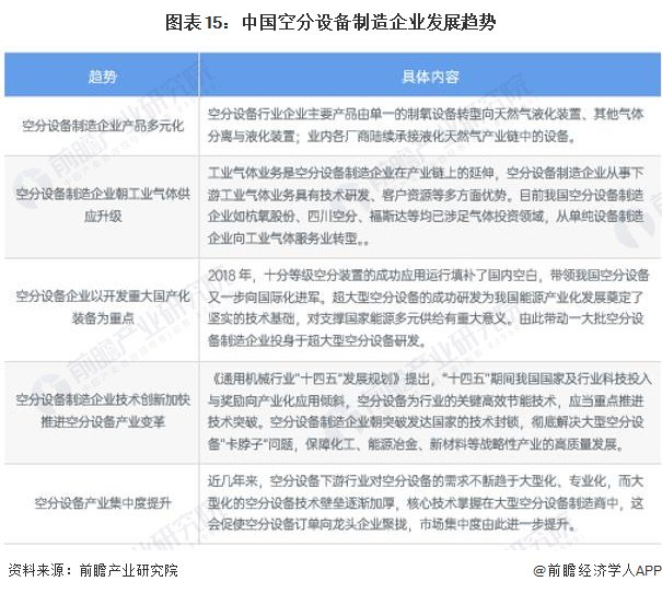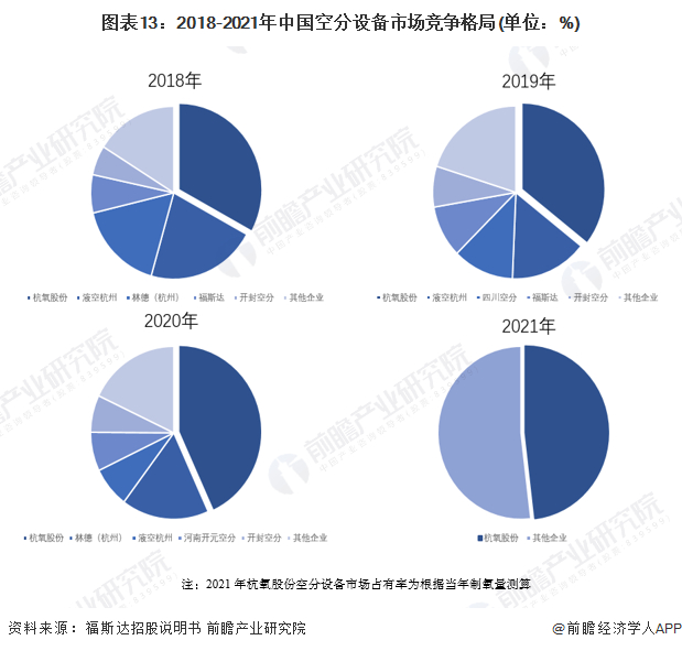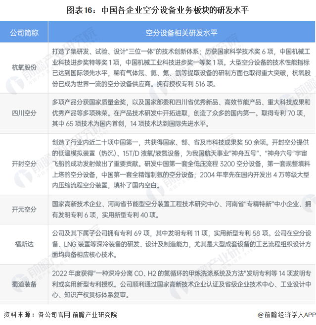 以杭氧股份、四川空分、开封空分、开元空分、福斯达、蜀道装备等企业为代表的空分设备研发行业均致力于设备性能指标的突破。