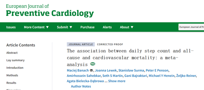 ①Maciej B, et al. The association between daily step count and all-cause and cardiovascular mortality: a meta-analysis, European Journal of Preventive Cardiology, 2023;, zwad229
