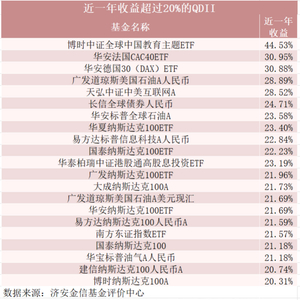 截至8月10日,博时中证全球中国教育主题ETF(QDII)近1年收益涨幅已达44.5%。同时,多只跟踪纳指的QDII产品也榜上有名。