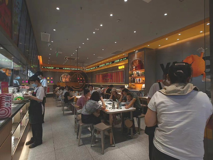 就这样,小杨生煎留在了环球港。现在,店面重新装修过后,人气依然很旺。日前一个工作日下午2点,记者看到,店铺里座无虚席,不少顾客正在品尝它推出的新品:火锅肥牛生煎。