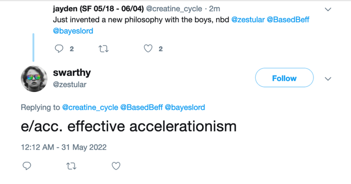 大约在去年5月,几个Twitter用户开始共同撰写关于“有效加速”的内涵和规则,并在Spaces和Substack社区里进行了发布。