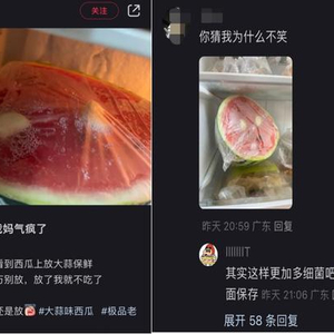 这么做真有点为难,还是“蒜”了吧,不仅不能帮西瓜杀菌,还会让西瓜变成“大蒜味西瓜”,难以下咽。关于保存西瓜这件事,