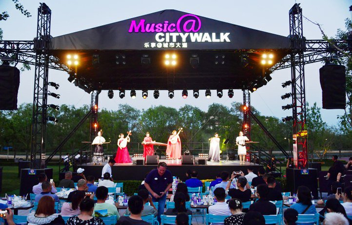 舞台上,功夫熊猫阿宝、变形金刚大黄蜂燃炸飙舞,舞台下,人们身着雨衣伴随着动感音乐热烈起舞,随着水柱一跃而起在空中炸开水花,全场气氛达到顶点。今年暑期,环球影城迎来了首个夏季“环球酷爽夏日”,掀起暑期消费热潮。北京环球度假区自2021年9月20日盛大开园以来,接连推出了“环球中国年”、龙虎新年秀、王者荣耀花车巡游等季节性主题活动,备受市民喜爱。7月16日晚,“弦动华彩,盛夏华章——中国民乐走进北京环球城市大道”音乐会在北京环球度假区奏响。今年暑期自6月17日至8月26日,每周六晚上北京环球城市大道都有露天音乐演出,游客们可免费观看。
