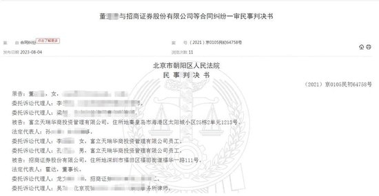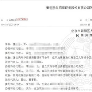 在这样攻略下,董某心动了。2017年8月16日,董某将投资款330万元转到玉泉山三号基金账户,并与富立华商公司和招商证券签订了基金合同。