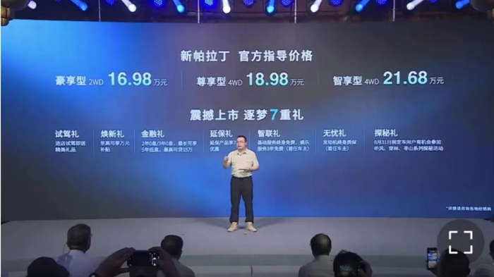 8月13日晚,郑州日产硬派越野SUV——新一代帕拉丁正式上市。新车共推出3款车型,售价区间为16.98-21.68万元。