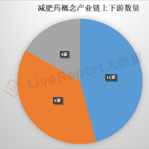 除以上几家代表性公司外,其他上市药企或多或少均在减肥药产业链上有所布局。据LiveReport大数据梳理,港美A三地市场标志性减肥药概念上市公司共计24家,其中上游公司4家,中游9家,下游11家。
