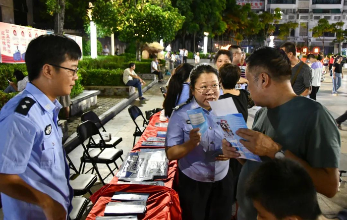 八月的夏日气温攀升,好在几场细雨带来了些许凉意,市民群众趁着夜色,更加悠然自得地走进公园、广场等地交谈、乘凉。民警也开启“摆摊”模式,以群众“看得见、容易懂、记得住”的方式,加强防诈骗、反邪教、防溺水、暑期交通安全等宣传和警示教育,真正“宣”出安全。当晚,全市共设置宣防点31个,发放宣传资料14403份、播放宣传视频25条。