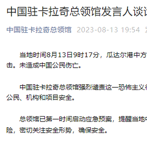 总领馆已第一时间启动应急预案,提醒当地中国公民、企业、项目提高警惕,升级安保举措,防范安全风险,密切关注安全形势,确保安全。
