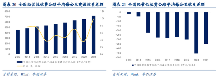 2021年末全国收费公路累计建设投资总额达到12.1万亿元,较2020年末净增1.3万亿元,同比+12.1%。