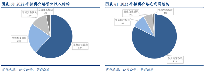 2022年,公司实现毛利29亿元,其中,投资运营板块实现毛利24亿元,占比82%,毛利率47%;交通科技板块实现毛利2.8亿元,占比10%,毛利率15%;智慧交通板块实现毛利1.9亿元,占比7%,毛利率19%;交通生态实现毛利0.4亿元,占比1%,毛利率14%。