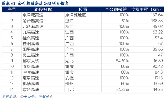 在公路投资运营管理方面,公司自2015年以来,先后参控股收购阳平高速、桂阳高速、桂兴高速、灵三高速、鄂东大桥、重庆沪渝高速、重庆渝黔高速、安徽亳阜高速、重庆成渝高速、招商中铁项目、诸永高速、乍嘉苏高速、昆玉高速、京台高速廊坊段、廊沧高速廊坊段等26条高速公路。