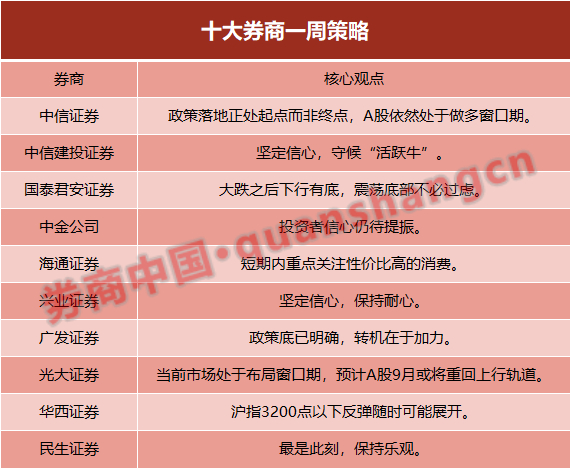 【十大券商一周策略】3200点以下或随时反弹!坚定信心,守候"活跃牛"