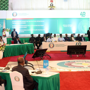 ▲ 8月10日在尼日利亚首都阿布贾拍摄的西共体领导人就尼日尔政变召开的紧急会议现场。