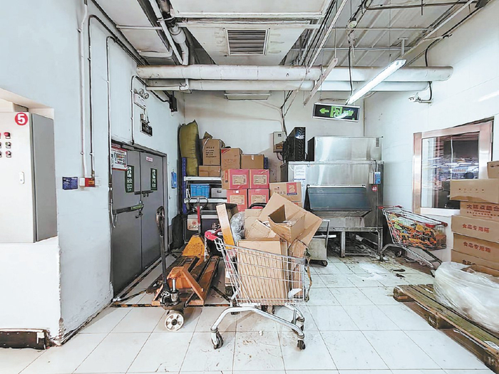 除了指示标志被遮挡,一些超市的安全出口也被各种“拦路虎”堵得结结实实。在沃尔玛超市清河万象汇店,记者沿疏散指示标志走向一处安全出口,却被两个保鲜柜拦住了去路,两扇双开防火门也只剩下单扇门可以通过。记者在物美超市沙河店和七鲜超市清河万象汇店也发现了同样的情况,防火门前被液压搬运车和堆满货物的手推车阻挡住,让近在咫尺的安全出口看得见却行不通。