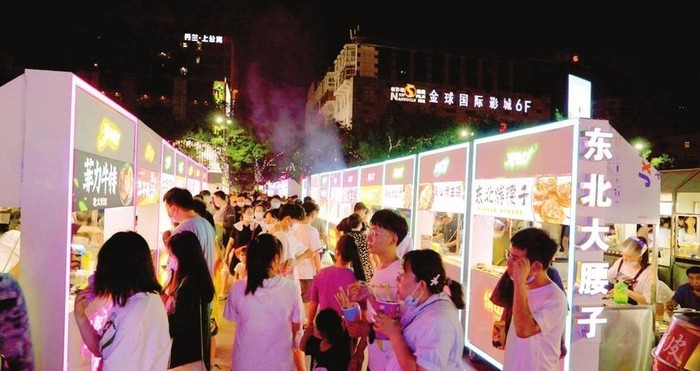 在位于和平路陵西大街交叉口的城南夜巷,自选小冰汤圆、脆皮羊肉串、火锅面筋等小吃摊位一字排开。“目前共有260户商户入驻,每天来往的顾客有六七千人,商户们将营业到凌晨一两点。”城南夜市负责人王亚辉说。