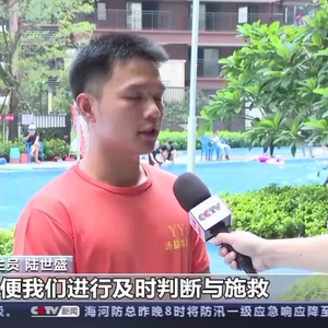 救生员 陆世盛:我们救生员都有一种很敏锐的判断,看到小朋友在救生圈上玩耍,一旦翻下来,我们就知道他容易溺水。还有,现在小朋友的泳衣不够显眼,我们时刻盯着泳池看,建议家长给孩子买颜色鲜艳、与水面反差比较大的泳衣,以便我们进行及时判断与施救。