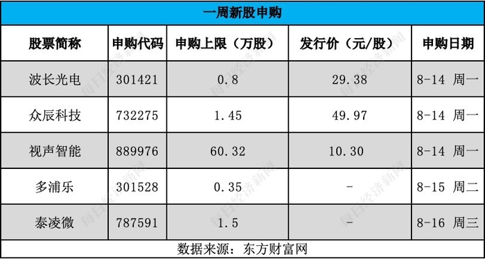 而在本周,A股市场有波长光电、多浦乐等5家公司将迎来申购。