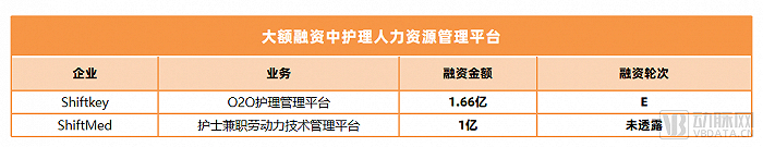 对机构端而言,Shiftkey的“互联网+护理‘’解决方案,实际上既帮他们管理了病人,也帮他们管理“上门服务”,做远程医疗支持。目前,Shiftkey平台已经走到E轮融资,聚集了数十万护士及护理人力资源,正在跑向IPO。