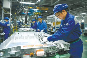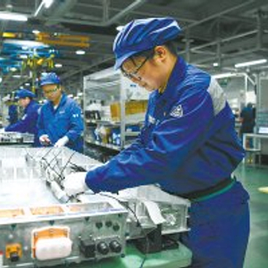 在江苏省一电池生产车间,工人在生产电池。新华社发