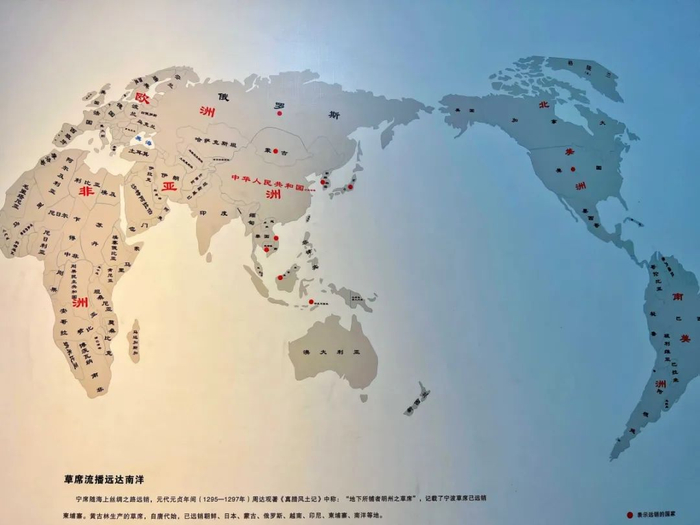 元代元贞年间(1295-1297)周达观所著的《真腊风土记》中称:“地下所铺者明州之草席。”记载了宁波草席已远销柬埔寨。