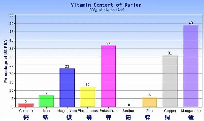 注:不同批次、产地的榴莲营养成分存在差异,此表格仅做参考
