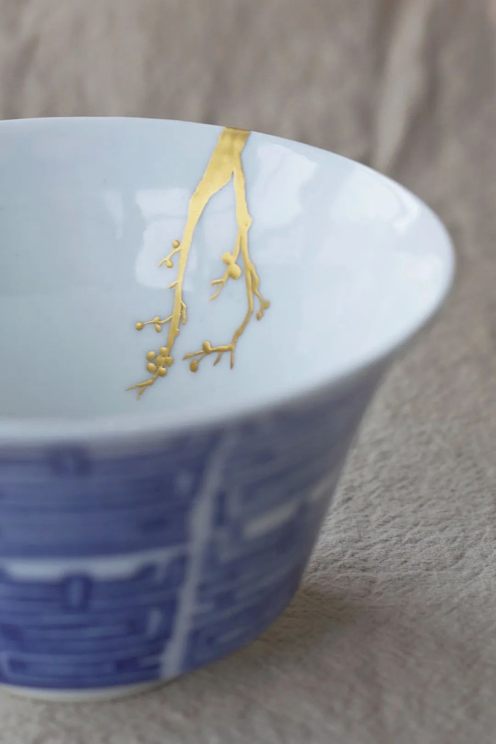 “我们不满足于用胶把它粘起来,于是开始找做金缮修复的人,但审美也和想象有差别。我和瑾晗商量后,一拍即合,决定自己做金缮和锔瓷手艺,想把自己的东西修一修,就去学习了器物修复。”