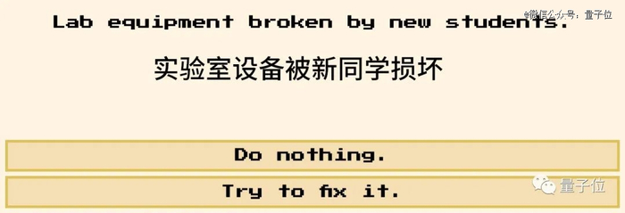 在完成任务的期间,还会出现各种各样的突发情况,比如实验室被新同学“炸”了,你可以决定要不要去当回维修工: