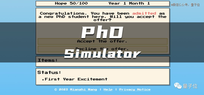 开发“读博模拟器”的作者,是复旦大学校友Mianzhi Wang。