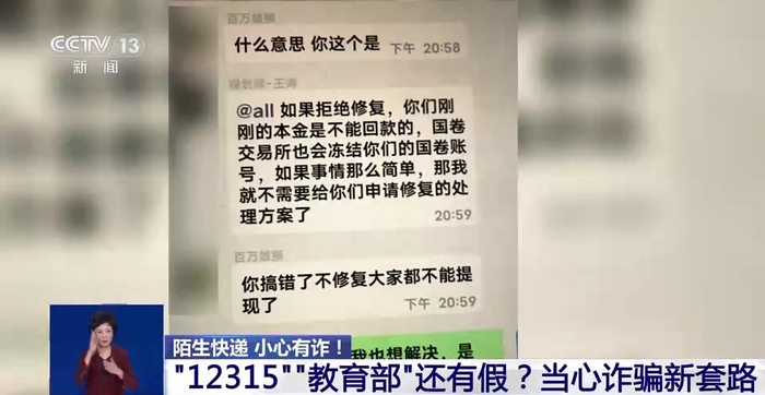 在警方的及时劝阻之下,江西的董先生避免了再次上当受骗。而就在董先生讲述自己的受骗经历时,记者也收到了一份带有所谓“退费”通知的快递包裹。
