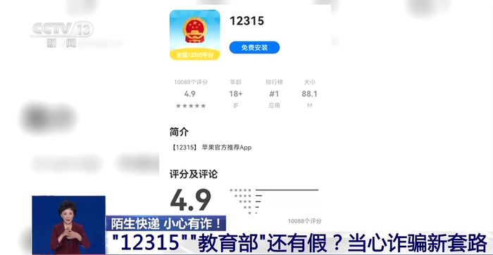 记者:这个就是我根据对方提供的链接下载的“12315中消协”软件,其实它是假冒的。旁边这个“全国12315平台”蓝色标识才是真正的官方软件,是我们从12315官方网站上下载下来的正规软件。像这样花样翻新的诈骗手段还有不少,我们一定要提高警惕。