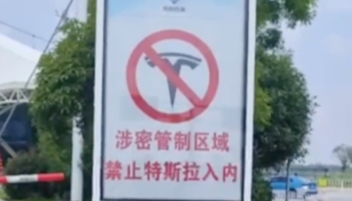 8月12日,湖南岳阳,有网友爆料称,三荷机场的停车场立有告示,写道“涉密管制区域,禁止特斯拉入内”。