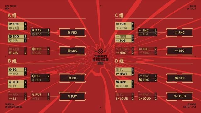 北京时间8月14日,历经8个比赛日后,2023无畏契约洛杉矶全球冠军赛的小组赛阶段比赛已全部结束。来自太平洋赛区的PRX、DRX,来自美洲赛区的EG、LOUD,来自EMEA赛区的FNC、FUT,以及来自CN赛区的EDG、BLG,合共八支队伍晋级后续的双败淘汰赛赛段。