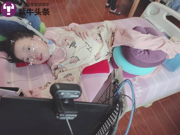 包珍妮患病后,身体机能逐渐衰退,13岁时已彻底躺在了床上,只有右手大拇指能够活动。她曾经四闯ICU“鬼门关”,呼吸只能依赖一台24小时不间断运作的呼吸机,家人轻微翻动她的身体都可能导致骨折。然而,就是这么一个“海绵女孩”却自强不息,曾经出版过诗集,为歌手填词,目前还在坚持着文学创作。