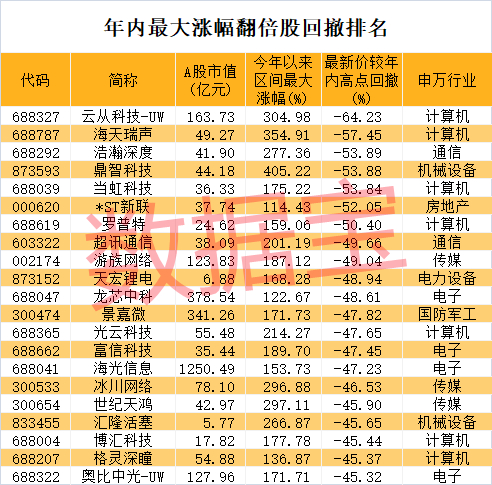 回撤幅度较大的还有海天瑞声、浩瀚深度、当虹科技、罗普特、游族网络等。