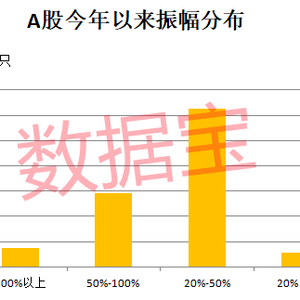 证券时报·数据宝统计,年内振幅介于20%至50%之间的股票数量最多,达到3127只,占比59.56%;年内振幅介于50%至100%之间的股票数量1467只,占比27.94%,排在第二位。年内振幅100%以上的股票369只,占比7.03%。而振幅在20%以内的股票数量最少,占比仅5.47%。