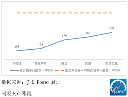 豪华车型的车况质量普遍相对更好。根据J.D. Power君迪发布的2022中国新车质量研究(IQS),保时捷每百辆车问题数(简称为“PP100”)为163,在豪华车品牌中排名第一,随后紧跟着的是雷克萨斯与路虎,均低于主流车品牌PP100的均值(219)。