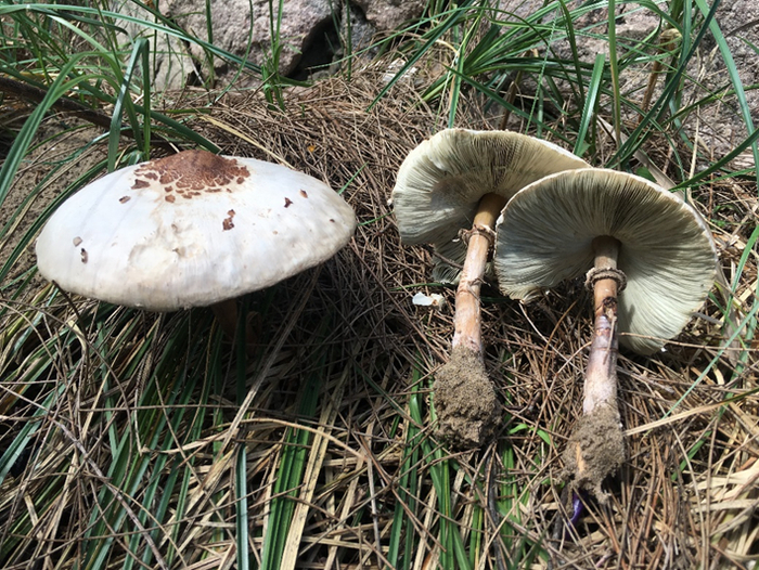 鹅膏属:其形态特点可以总结为“穿靴戴帽”,即头上戴帽(菌盖),腰间系裙(菌环),脚上穿靴(菌托),有此形态的蘑菇大多有毒甚至剧毒。