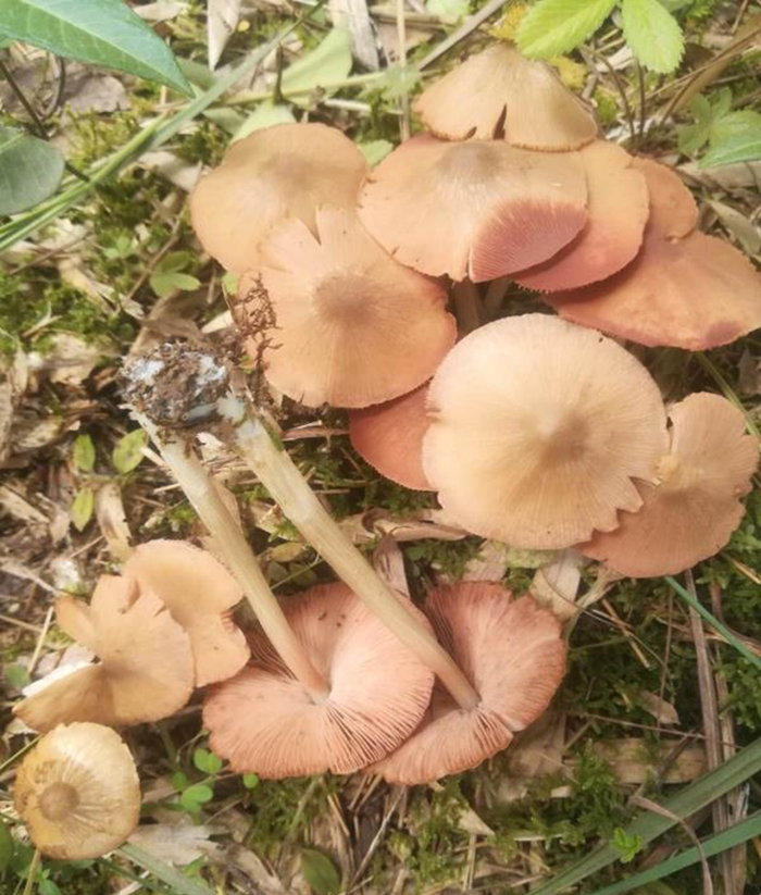 此外还有很多胃肠炎型的毒蘑菇,如雨后公园、小区草地、绿化带中常见的青褶伞,长得像平菇的日本红菇,长得像鸡枞的近江粉褶菌,长得像食用牛肝菌的毒新牛肝/淡红粉末牛肝菌等。