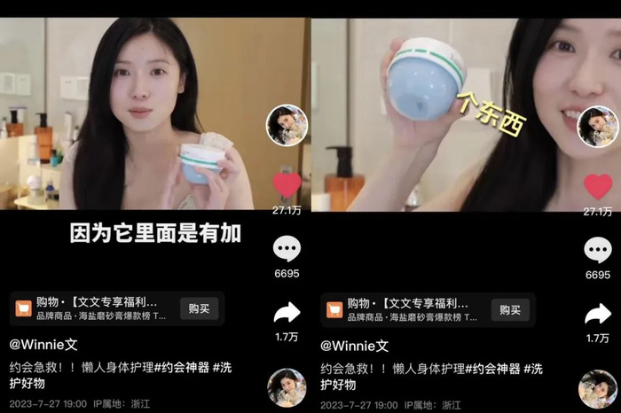 “没想到,带货的这条短视频,比很多没有带货的短视频曝光还要多。”@Winnie文 的运营团队说,7月27号@Winnie文 账号发布了首条带货短视频,带货未兰海盐身体磨砂膏,通过真情实感的分享和效果实拍,仅7天内短视频带货单品销量就达到了4万+,还获得了众多粉丝的支持和认可,单条视频的点赞量达到27.1万,收藏量11万。