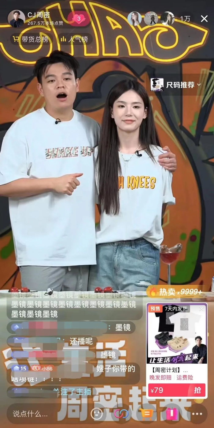 @CJ周密 7月19号在潮车间的操盘下进行了首场直播带货,主题是“让生活周密起来”,最高同时在线人数1万+,并在爆品和GMV上创下了开门红,其中一款兼具互动性与趣味性的情书T恤销量达1万+,同时为多个潮牌做预售与预热,发扬国潮文化。未来,在抖音电商上,周密的运营团队将在两个核心方向上发力,一个是聚焦人群,就是以Z世代、喜欢潮生活的人群为主;另一个方面就是放大内容,但不是放肆内容,会用非常正确的价值观和年轻人一起共创一些有价值的事情,去发扬潮流生活方式,让大家的生活真的“周密”起来。